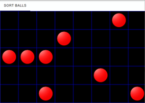 Ordne die Kugeln in eine Reihe. Beim Ziehen mit gedrückter Maustaste bewegen sich die Spielfiguren sprunghaft von Zelle zu Zelle. Du verwendest zwei Callbacks pressCallback() und dragCallback().