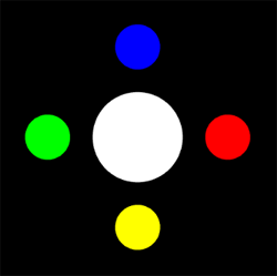 Schritt 2: Mit der Maus die Lampe in 4 Farben ein- und ausschalten def onMousePressed(x,y): if getPixelColorStr(x, y) == "red": buttonIndex = 0 elif ... elif getPixelColorStr(x, y) == "white": buttonIndex = -1 else: buttonIndex = -2 if buttonIndex >= 0: showLamp(buttonIndex) def onMouseReleased(x,y): showLamp(-1) makeGPanel(-200, 200, -200, 200, mousePressed = onMousePressed, mouseReleased = onMouseReleased)