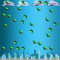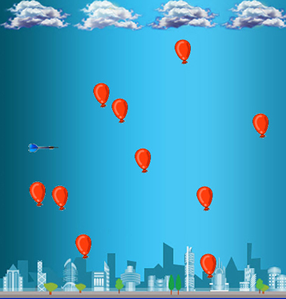 Programm: from gamegrid import * from soundsystem import * from random import randint # --------------------- class Dart -------------------------- class Dart(Actor, GGMouseListener): def __init__(self): Actor.__init__(self, True, "sprites/dart.gif") self.oldLocation = Location() def mouseEvent(self, e): location = toLocationInGrid(e.getX(),e.getY()) self.setLocation(location) self.oldLocation.x = location.x self.oldLocation.y = location.y def collide(self, actor1, actor2): play() actor2.removeSelf() return 5 # --------------------- main ----------------------------------- makeGameGrid(600, 600, 1, None, "sprites/town.jpg", False) setTitle("Move dart with mouse to pick the balloon") setSimulationPeriod(50) dart = Dart() addActor(dart, Location(100, 300)) addMouseListener(dart, GGMouse.lDrag) for i in range(20): balloon = Actor("sprites/balloon.gif") addActor(balloon, Location(randint(50,550),randint(50,550))) dart.addCollisionActor(balloon) show() openSoundPlayer("wav/explode.wav") doRun() |