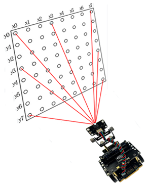 Maqueen Plus V3 ist mit einem Matrix-Lidar-Sensor ausgestattet. Innerhalb eines 60-Grad-Erfassungsbereichs liefert er eine Matrix mit 64 Messwerten.